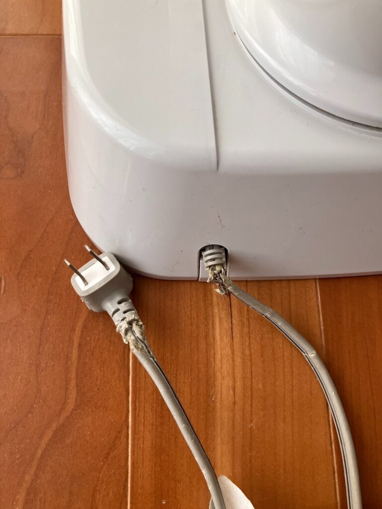 でも「電源コードが犬にかじられた」となると、やっぱり感電・発火が怖くて使えない…。